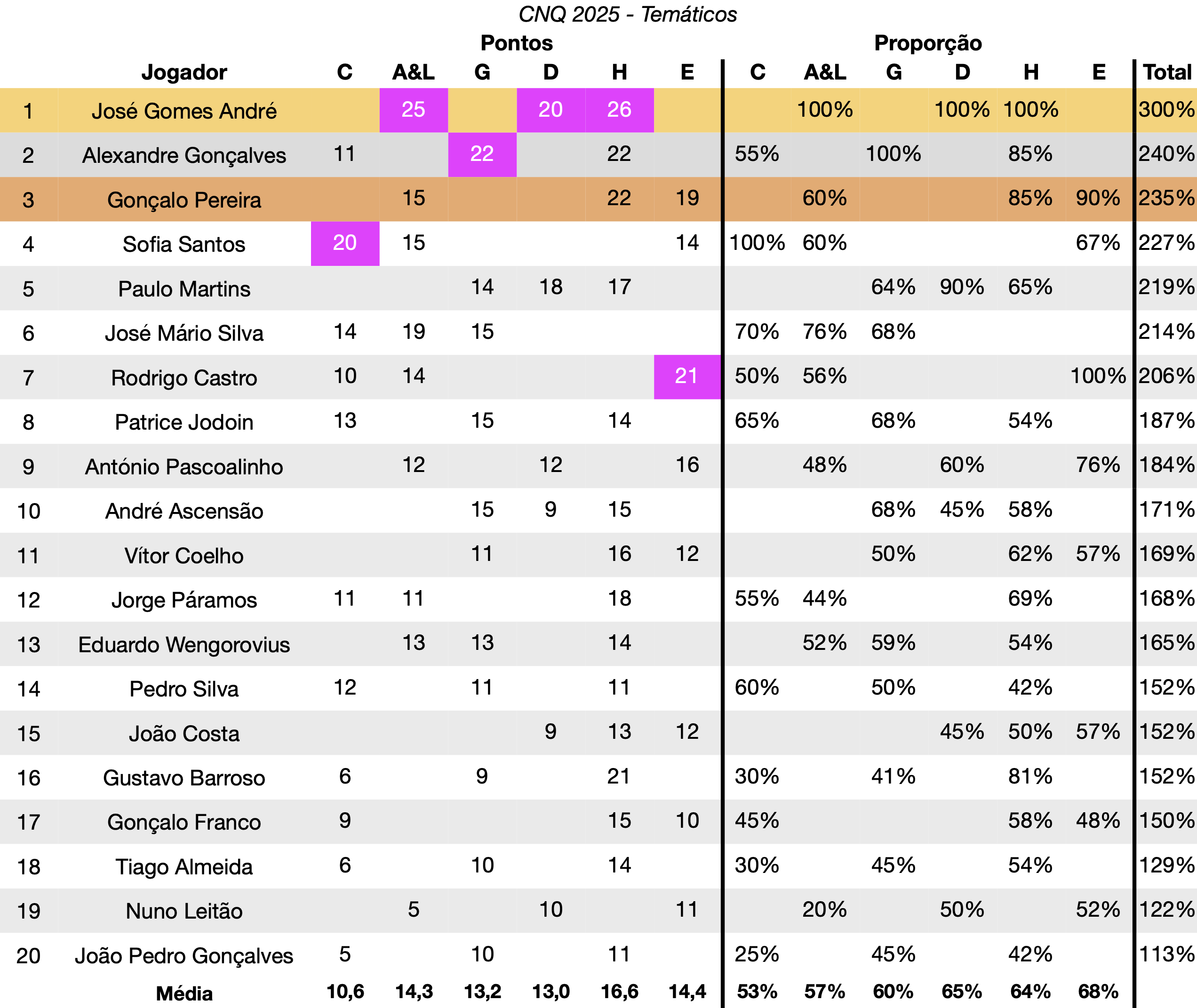 Finda uma hora de alta tensão, Rodrigo Castro, Sofia Santos e Alexandre Gonçalves lograram ser os melhores em cada um de 3 temas — mas o destaque foi todo para José Gomes André, que venceu os 3 temas a que se propôs e conquistou assim o 1º lugar no acumulado! Alexandre Gonçalves obteve a prata desta prova, com Gonçalo Pereira a conquistar o 3º lugar.